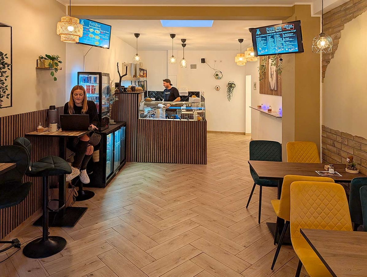 Alex Teichert lebt diese Leidenschaft: Braten, Backen, Frittieren – die Kartoffel ist sein Element. Das Interieur der „PottBox“? Schlicht, funktional, mit vielleicht sechzehn Sitzplätzen. Doch die Stimmung: authentisch, fast familiär – es dauert sicher nicht lange, bis sich die „PottBox“ über Bottrop hinaus als Treffpunkt für Knollenliebhaber etabliert.