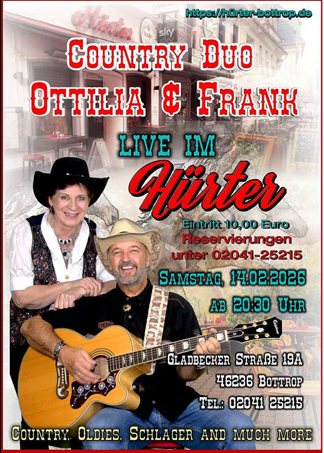 Let’s have a Party am Karnevalssamstag mit dem erfolgreichsten Country-Duo aus NRW: Ottilia & Frank – Country, Line Dance, Rock und Oldies vom Feinsten!