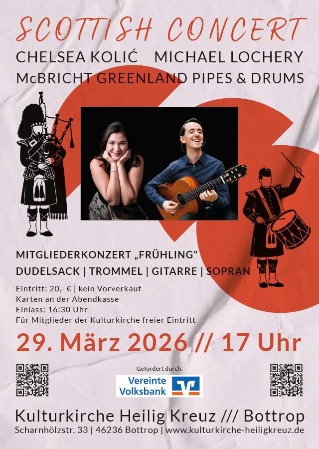 Das Programm wird umrahmt von McBricht Greenland Pipes & Drums aus Schermbeck – seit über 20 Jahren eine feste Größe in der schottischen Dudelsackmusik.