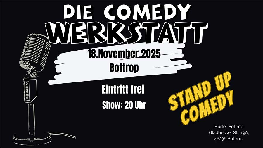 Ab 18. November gastiert regelmäßig (monatlich) „Die Comedy Werkstatt“ mit „STAND UP COMEDY“ im Hürter Die Comedy Werkstatt – Bühne. Stimme. Entwicklung. Die Comedy Werkstatt
