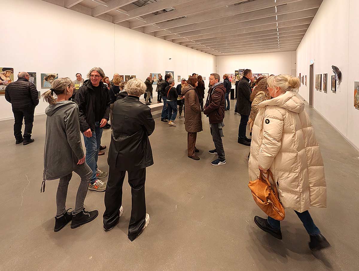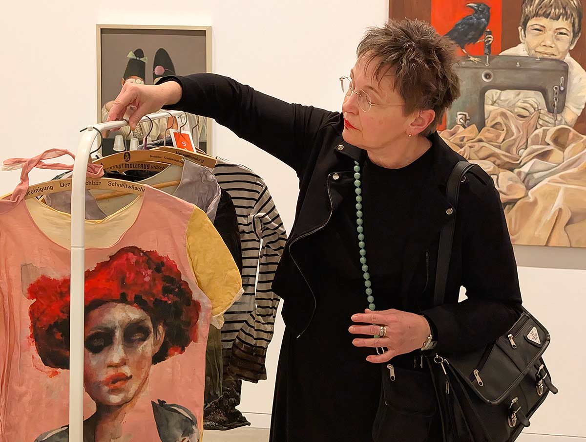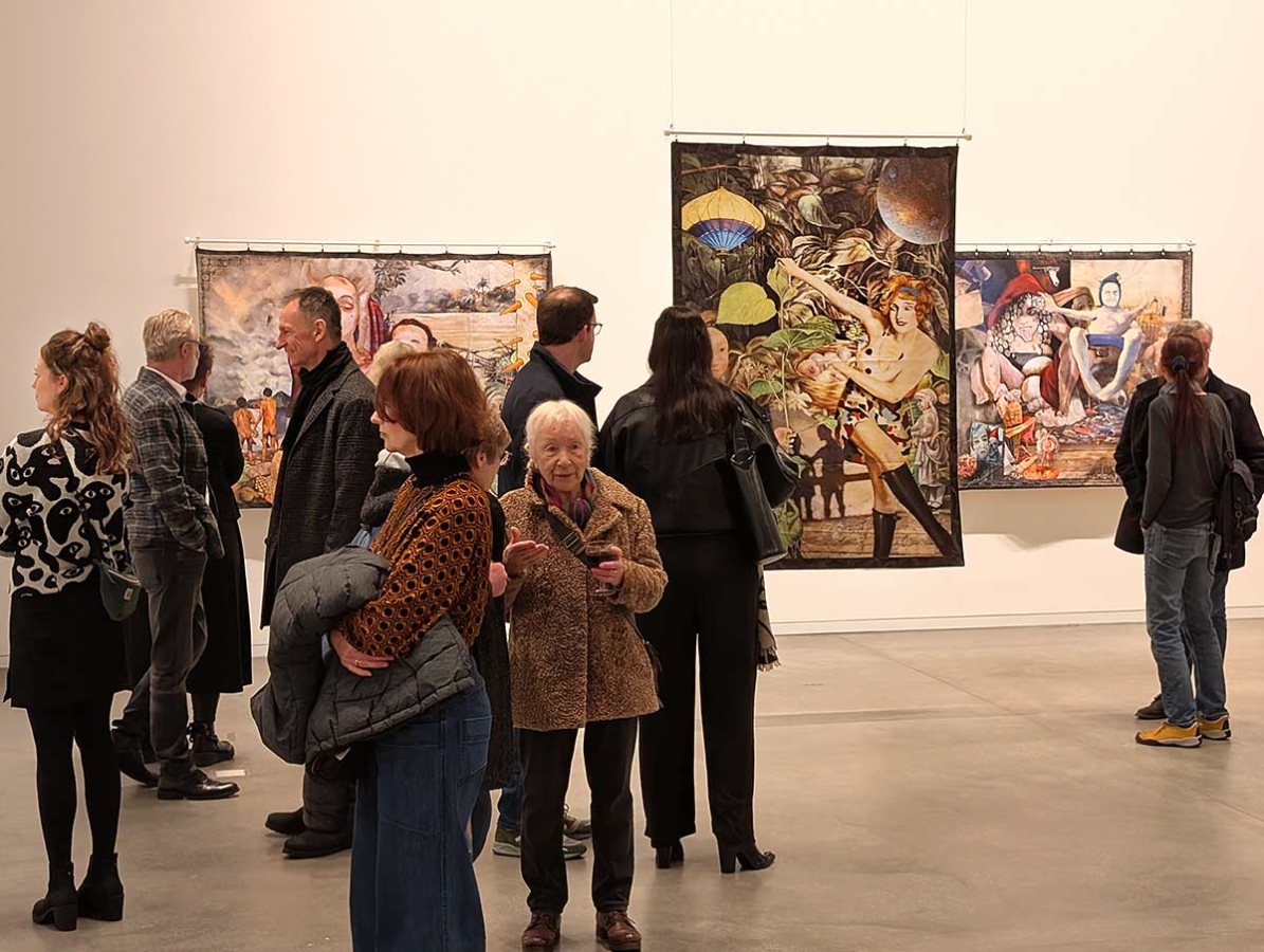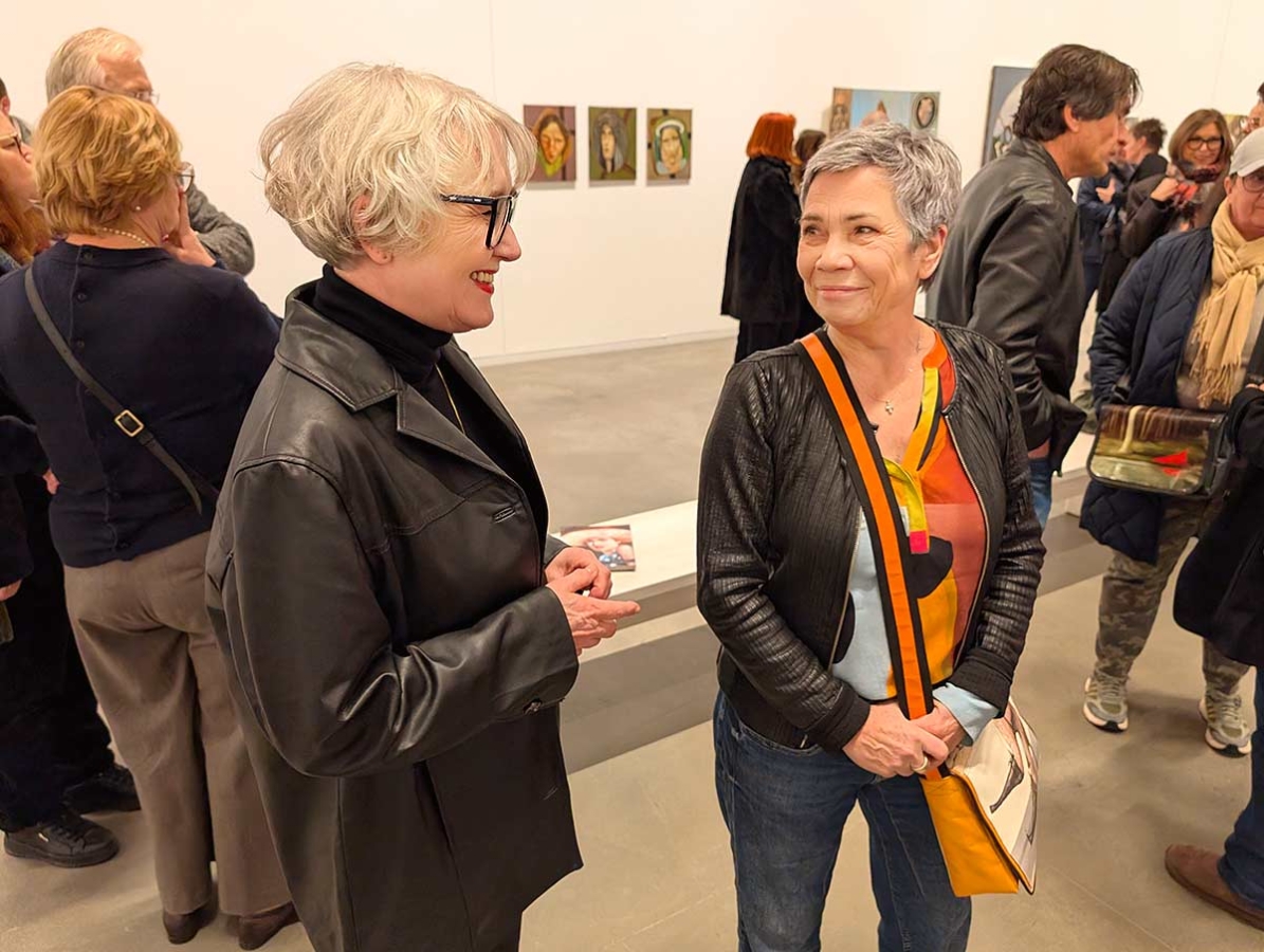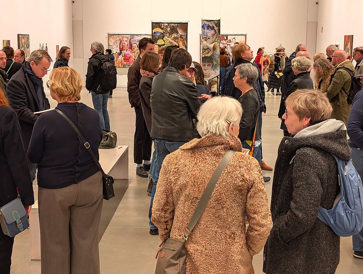 Vor einem Triptychon rätselten einige Gäste, ob Ex-OB Bernd Tischler hier Modell gestanden haben könnte. Die Künstlerin hüllte sich in Schweigen.