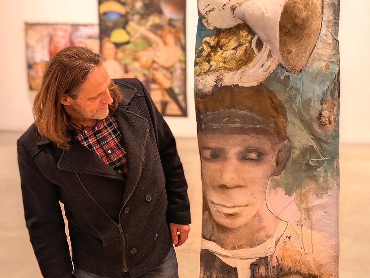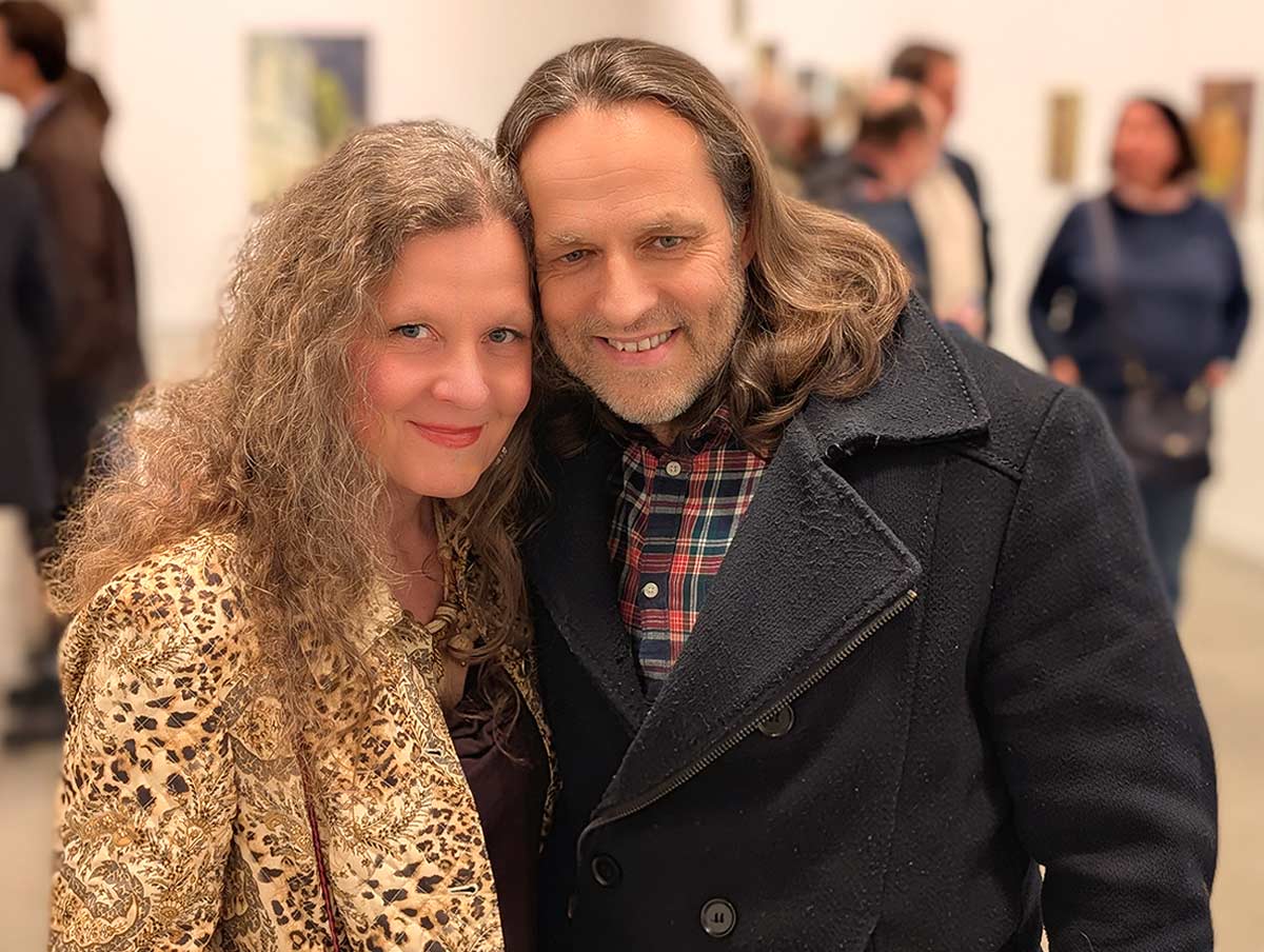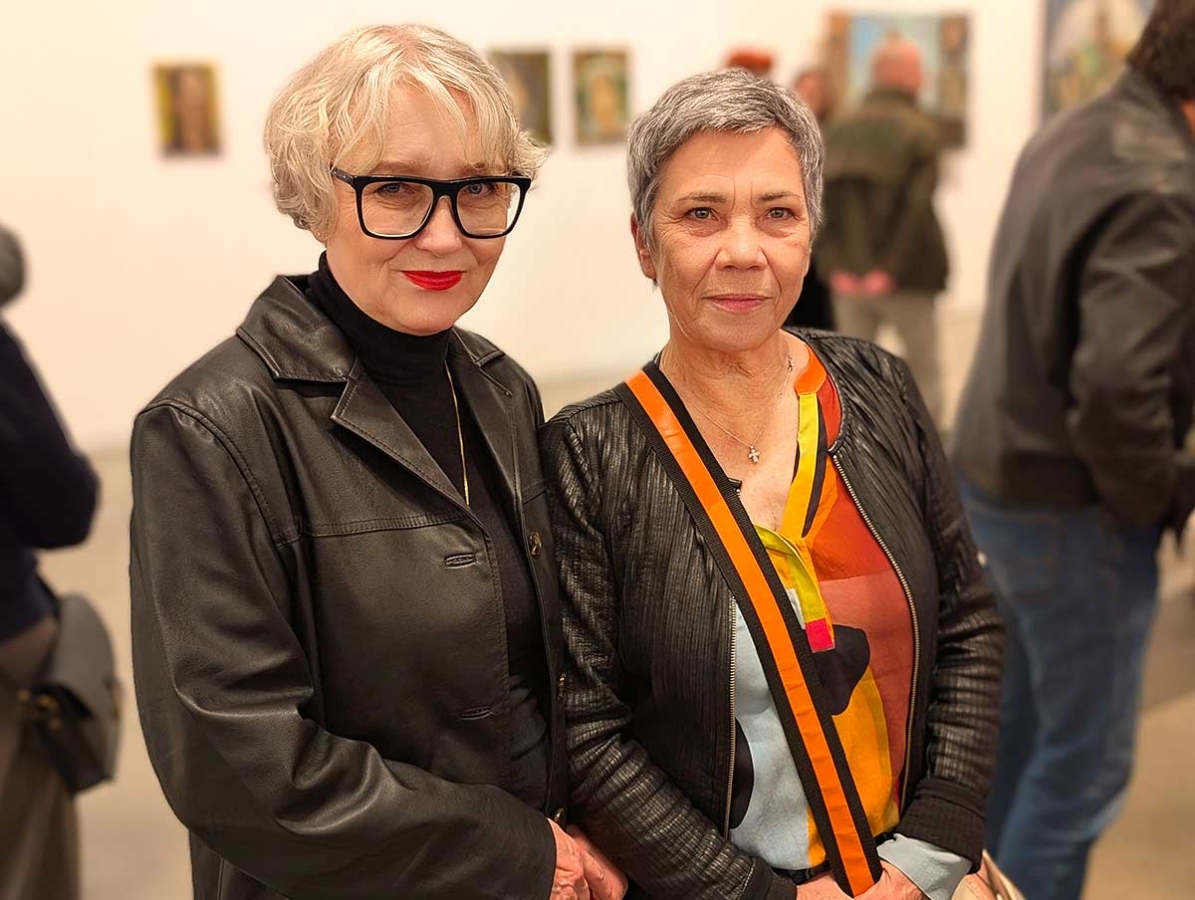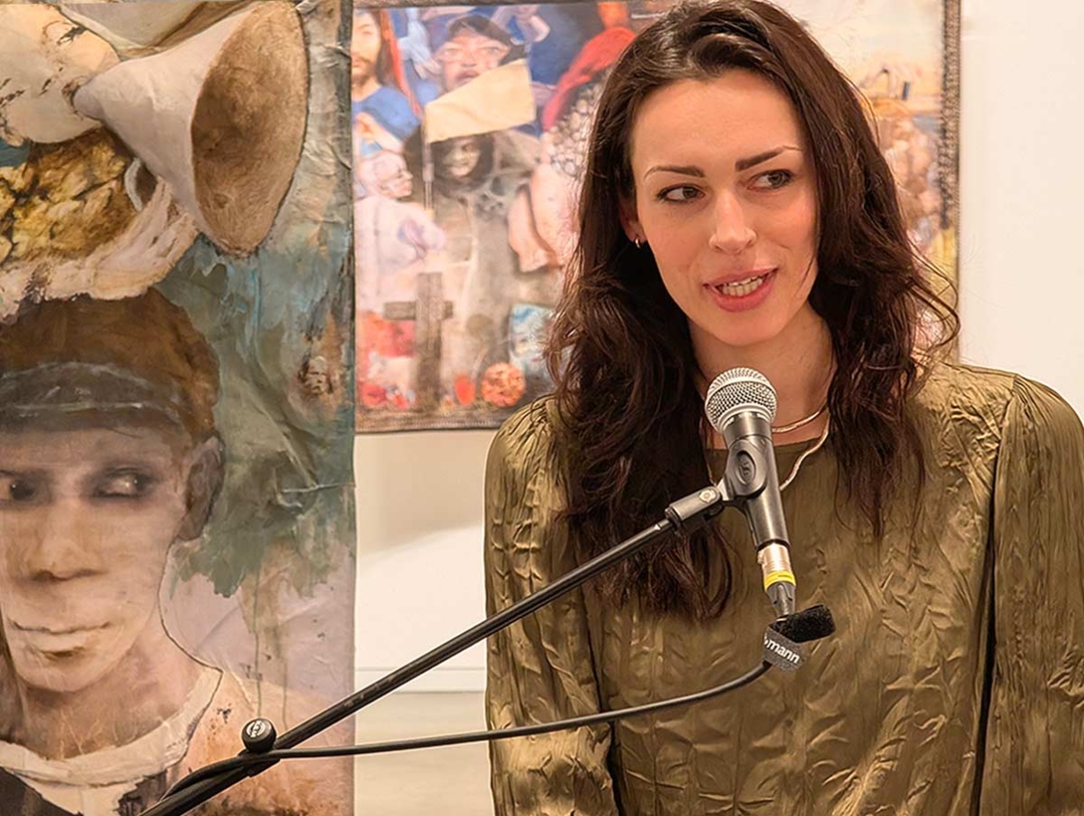 Vor einem Triptychon rätselten einige Gäste, ob Ex-OB Bernd Tischler hier Modell gestanden haben könnte. Die Künstlerin hüllte sich in Schweigen.