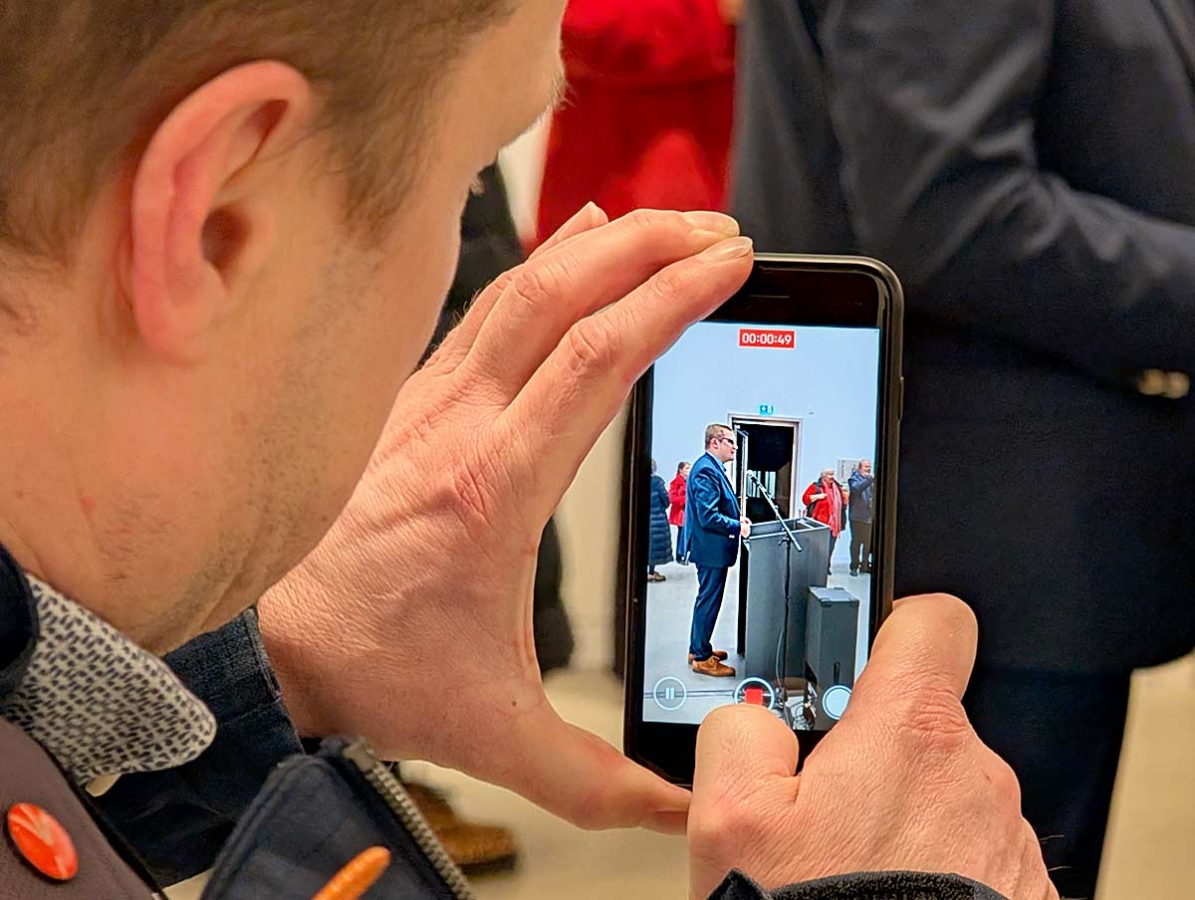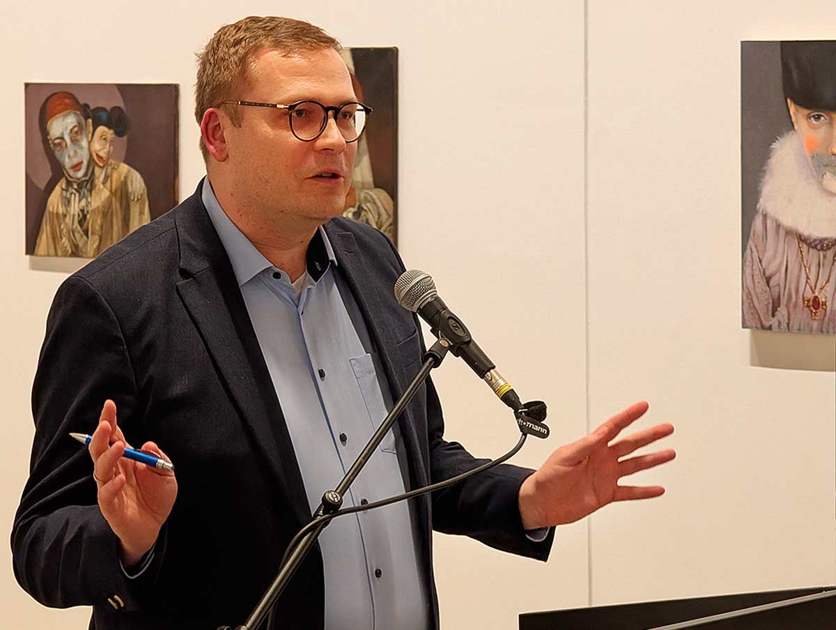 Mit gewohnt prägnanten Worten eröffnete Oberbürgermeister Mathias Buschfeld die Ausstellung und freute sich über die zufällige Begegnung mit einer ehemaligen Kommilitonin im Rahmen dieser Veranstaltung.
