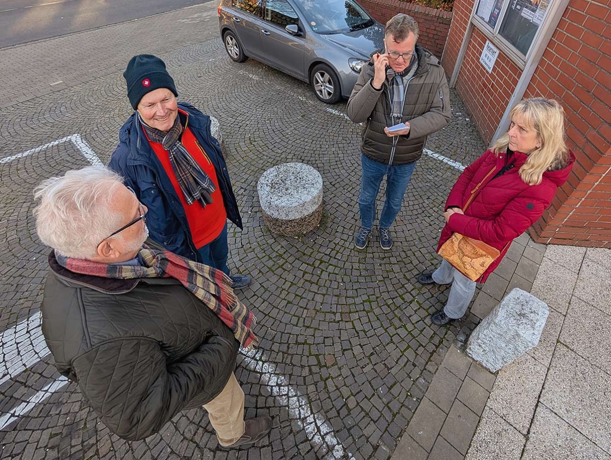 Drei Kolpinghäusler am Pferdemarkt: Elke, Peter, Udo. Der „Kolp“ befindet sich hinten links, hier nicht zu sehen.