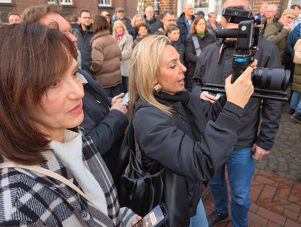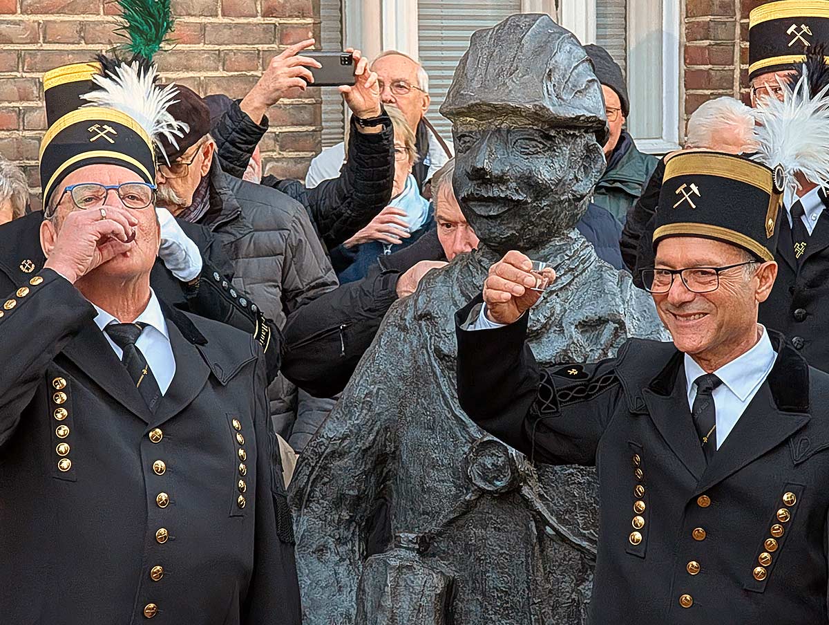 Los ging’s um 15 Uhr in der Alten Börse. Danach trafen sich über 1.000 Fans um 16 Uhr am Rathausplatz an der Kumpel-Anton-Skulptur mit der Ehrengarde zum gemeinsamen Singen. Einziges Manko: Der Toilettenwagen vom Weihnachtsmarkt wurde, anders als im letzten Jahr, nicht rechtzeitig aus dem Sichtfeld der Skulptur gezogen und trübte so ein wenig den freien Blick aufs Rathaus.