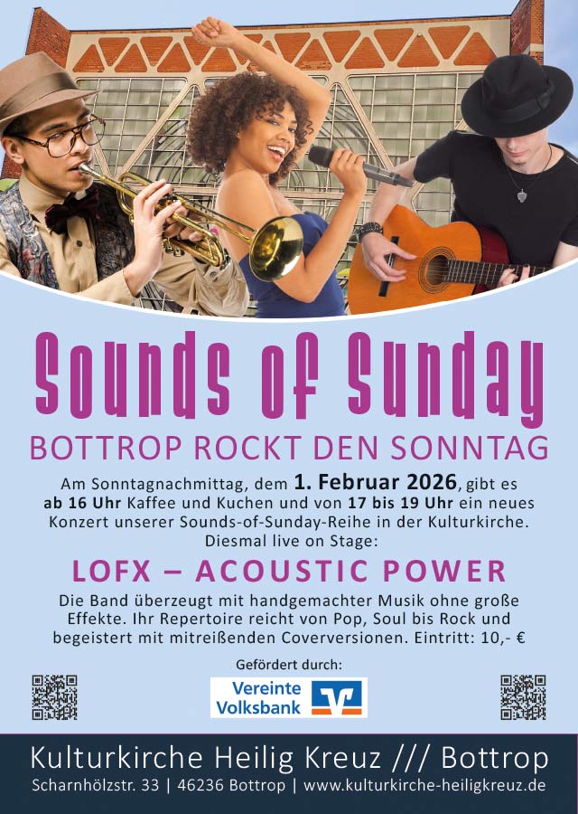 Schnappt euch eure Freunde, bringt gute Laune mit und taucht ein in den Sound of Sunday. Ob Kaffee und Kuchen, Live-Musik oder einfach Abtanzen am Sonntagnachmittag – hier zeigt Bottrop einmal im Monat, wie man den Wochenend-Ausklang richtig feiert!
