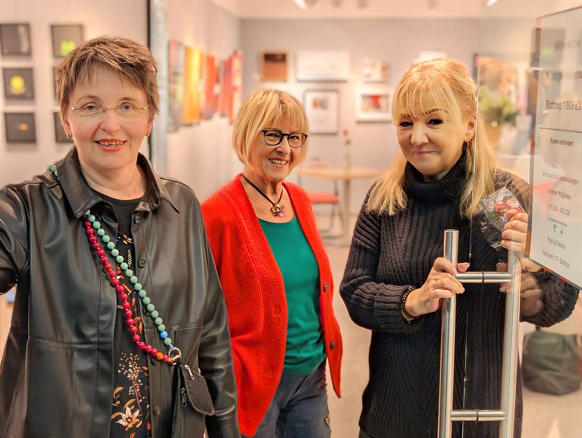 Und wieder eine sehr spannende Kunstausstellung in der Pop-up-Galerie, diesmal mit Werken von Carola Kernspecht, Marita Kiesendahl, Gilda Bräuer und Monika Kirsch-Ulbricht.