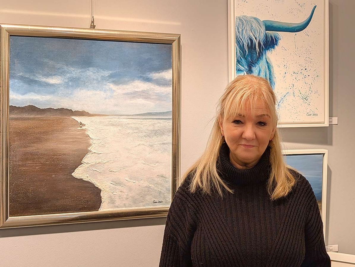 Die Ausstellung bietet Vielfalt: Sie zeigt blaugefärbte Porträts von schottischen Hochlandrindern, einsame Strände, nackte Kerle, die sich in bunten Abstraktionen verstecken, oder beantwortet die Frage „Was hat der Kerl nur im Kopf?“ mit surrealen Einblicken.